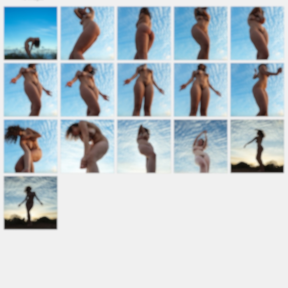 Art reference set of 16 images taken during sunset in front of an interesting cloud patter and the wind in my long hair. Working with low angles and distortion. All images shot with warm natural light outdoors, some backlit/silhouette. Most of the images are almost full body cut at my calves.