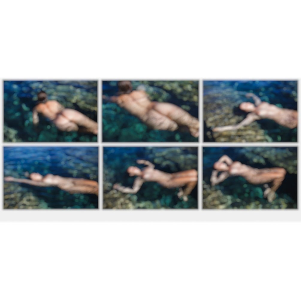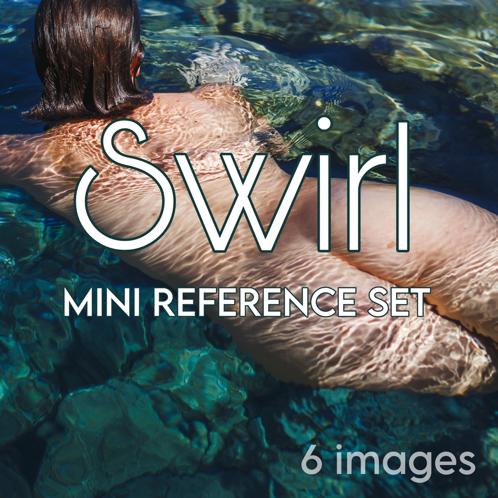 Mini art reference set of 6 images, focused on the colors of the sea water swirling and interacting with my bare skin.